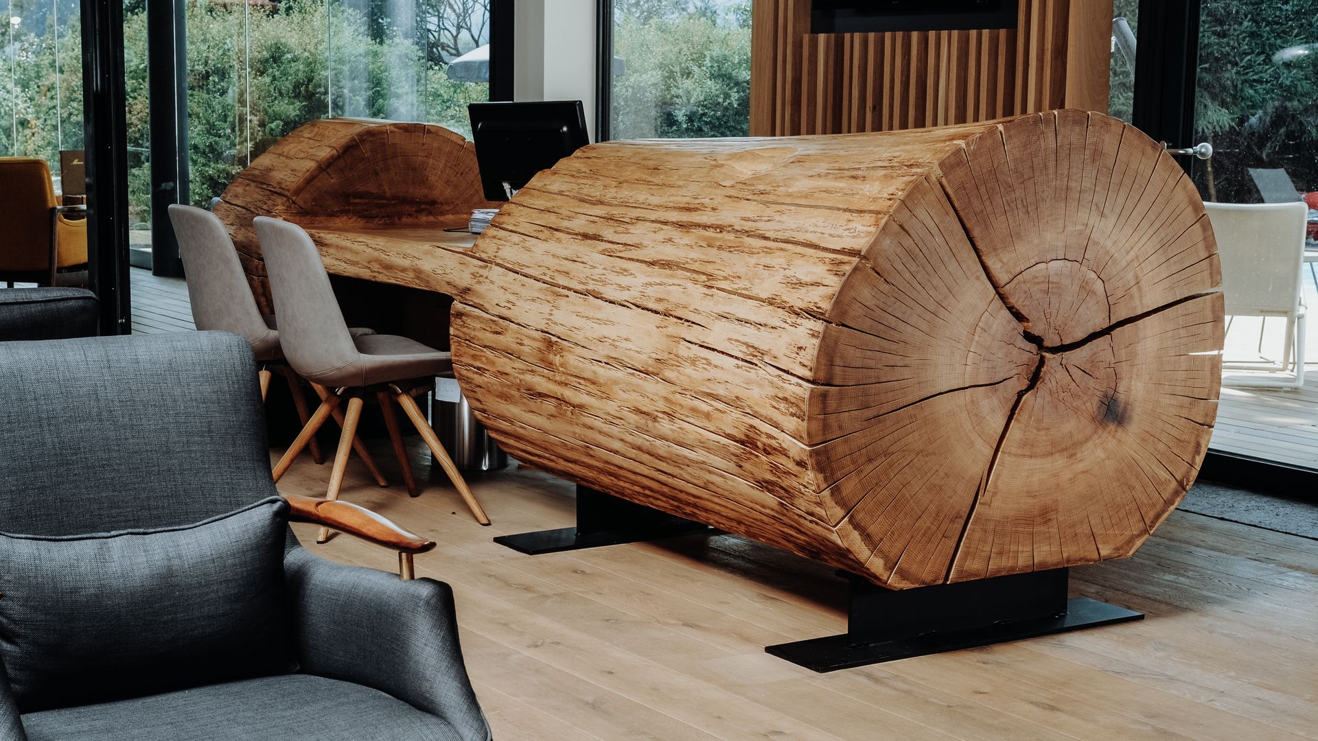 Bestehend aus einem ganzen Stamm ist jede Stammdesign Rezeption ein von der Natur geschaffenes Unikat, das in Empfangsbereichen moderner Büros oder Hotels einen bleibenden Eindruck hinterlässt. Die handwerkliche Verarbeitung garantiert Langlebigkeit und Stabilität. Durch die Verwendung eines Baumstamms entsteht eine markante Optik, die jedes Ambiente mit natürlichem Charme bereichert