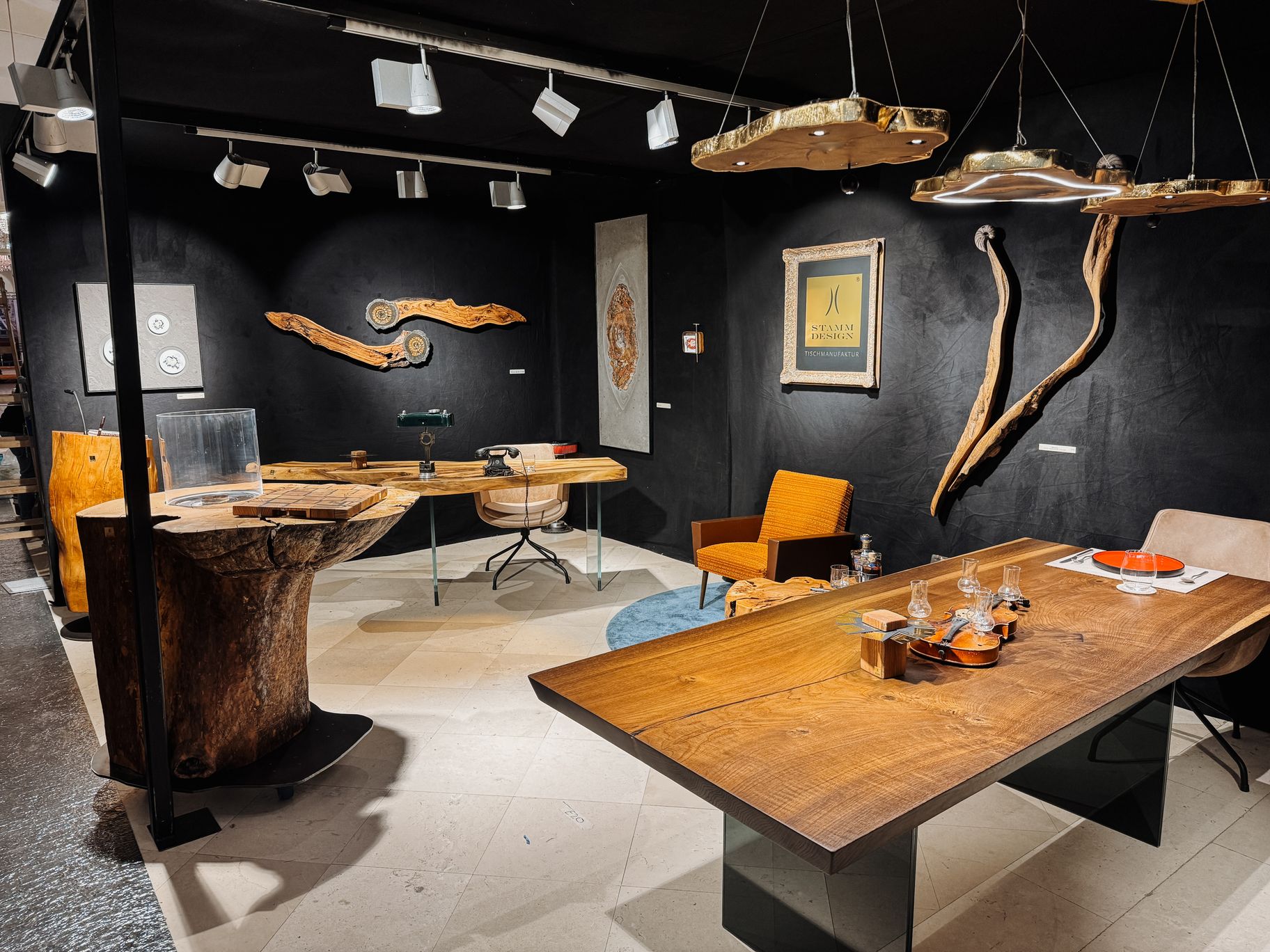 Moderner Baumstammtisch aus massiver dunkler Eiche mit klarer Linienführung und dunklen GlasbeinenSchreibtisch aus massiver Eiche in dunkler Ausführung mit gerader Tischkante und eleganten GlasbeinenEleganter Schreibtisch aus dunkler Eiche mit gerader Kante und Glasbeinen, handgefertigt von StammdesignExklusiver Eichenschreibtisch von Stammdesign mit dunklem Holzton, gerader Kante und Glasgestell in rauchigem LookDesign-Schreibtisch aus dunklem Eichenholz mit markanter Maserung und stilvollen Glasbeinen von Stammdesign