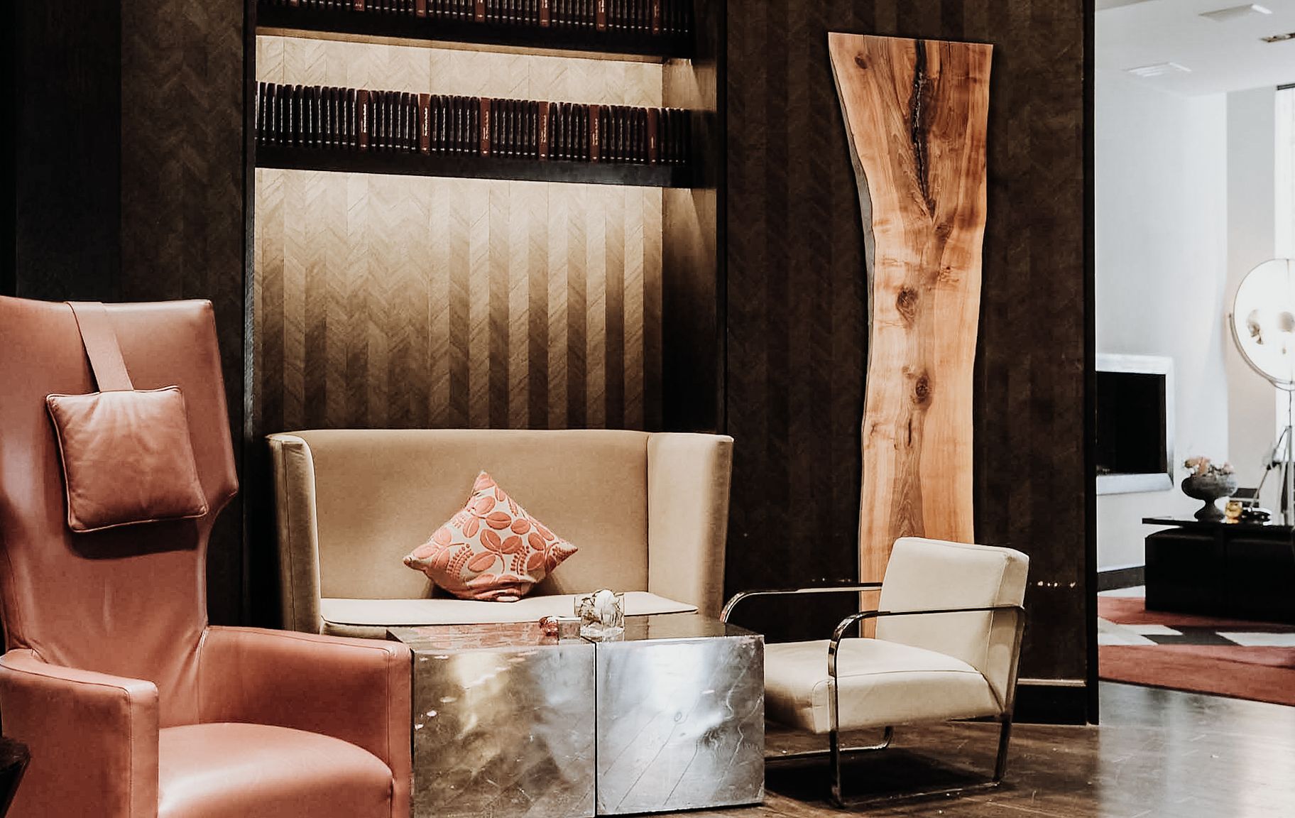 Elegante escultura de madera hecha de un tronco de árbol montada en la pared de Stammdesign.