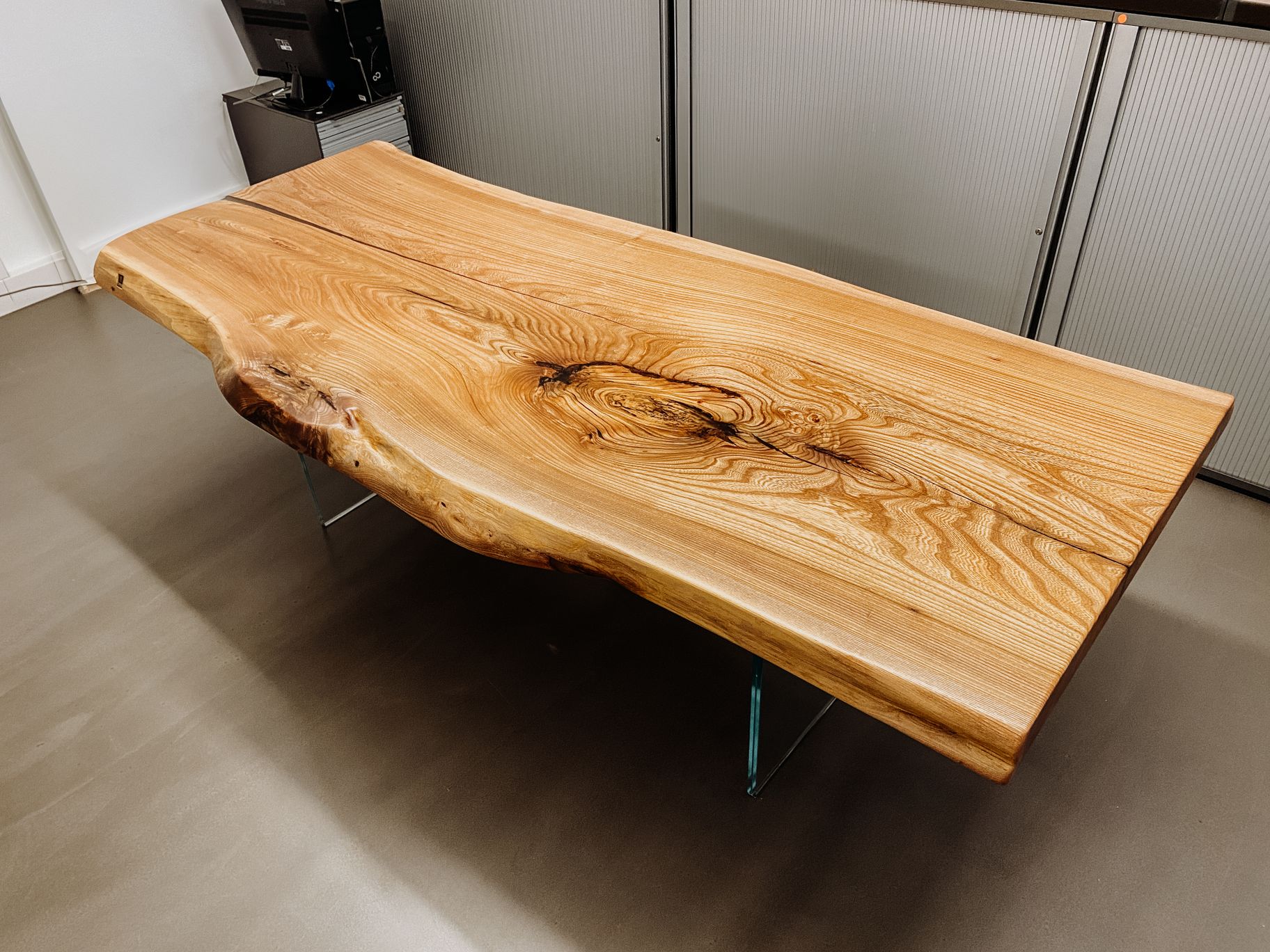 Scrivania artigianale con bella venatura da un tronco d'albero di Stammdesign in legno di frassino.